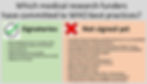 Only three signatories – MRC, NIHR and the Wellcome Trust – appear to have fully delivered on their commitments. All of these are based in the UK. (Recent monitoring reports by the MRC and by Wellcome are available online.)